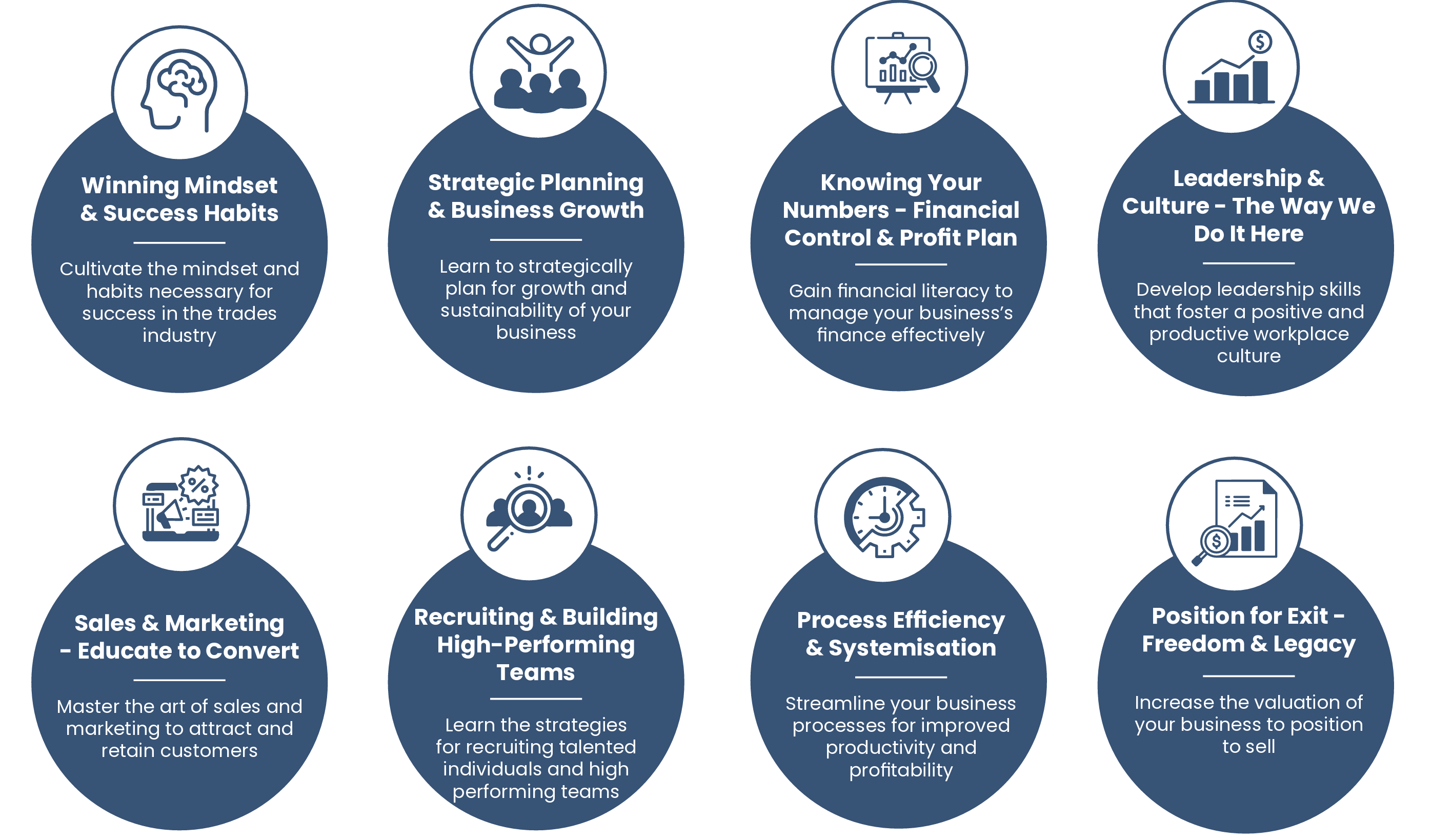 Designed specifically for trades business owners, this course equips you with the tools and strategies to elevate your business to new heights. With a focus on leadership, growth, and long-term success, you'll develop essential skills to thrive in a competitive industry.